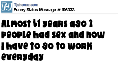 X says almost 61 years ago 2 people had sex and now I have to go to work everyday