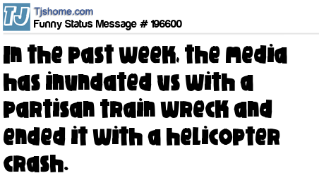 X says In the past week, the media has inundated us with a partisan train wreck and ended it with a helicopter crash.