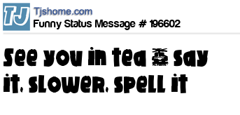 X says See you in tea ~ say it, slower, spell it