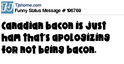 - # 157904 Canadian Bacon is just like regular bacon, but it apologizie all the time about not being regular bacon.