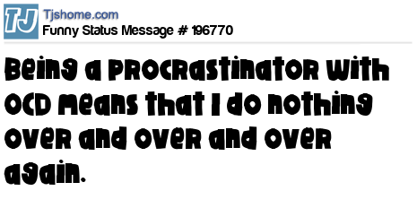 X says Being a procrastinator with OCD means that I do nothing over and over and over again.