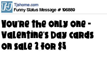 - # 201914 "Your The Only One For Me" Valentine's Day cards on sale 2 for $5 just seems wrong, totally wrong.
