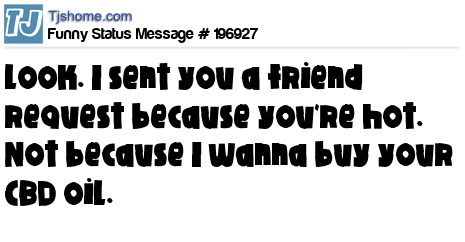 X says Look. I sent you a friend request because you're hot. Not because I wanna buy your CBD oil.