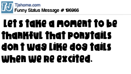 X says Let’s take a moment to be thankful that ponytails don’t wag like dog tails when we’re excited.