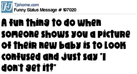 X says A fun thing to do when someone shows you a picture of their new baby is to look confused and just say "I don't get it?"