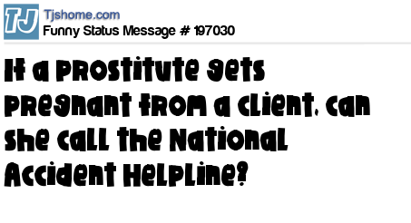 X says If a prostitute gets pregnant from a client, can she call the National Accident Helpline?