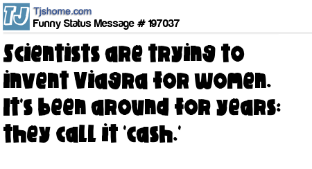 X says Scientists are trying to invent Viagra for women. It's been around for years: they call it 'cash.'