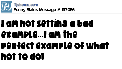 X  I am not setting a bad example...I am the perfect example of what not to do!