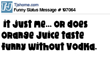 - # 19846 it just me or does orange juice taste funny without vodka?