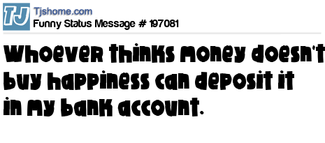 X is Whoever thinks money doesn`t buy happiness can deposit it in my bank account.