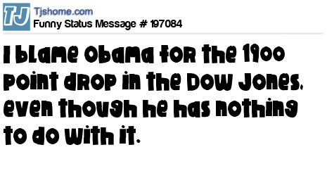 X is I blame Obama for the 1900 point drop in the Dow Jones, even though he has nothing to do with it.