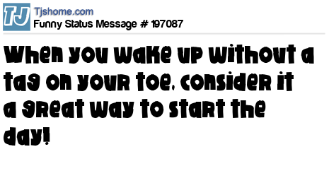 X is When you wake up without a tag on your toe, consider it a great way to start the day!
