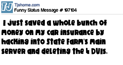 X says  I just saved a whole bunch of money on my car insurance by hacking into State Farm's main server and deleting the 4 DUIs.