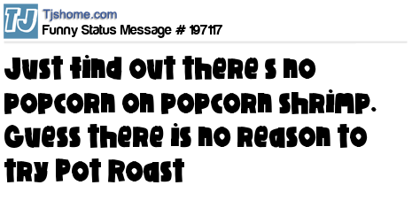 - # 204468 Once I found there was no popcorn in popcorn chicken there was no reason to try pot roast.
