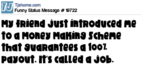 X My friend just introduced me to a Money Making Scheme that guarantees a 100% payout. It's called a job.