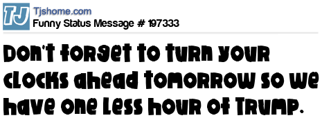 X is Don't forget to turn your clocks ahead tomorrow so we have one less hour of Trump.