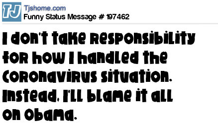 X is I don't take responsibility for how I handled the Coronavirus situation. Instead, I'll blame it all on Obama.