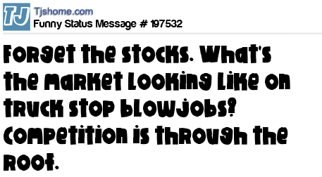 X is Forget the stocks. What's the market looking like on truck stop blowjobs? Competition is through the roof.