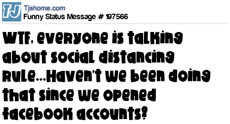 X says WTF, everyone is talking about social distancing rule...Haven't we been doing that since we opened facebook accounts?