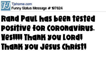 X is Rand Paul has been tested positive for Coronavirus. Yes!!!! Thank you lord! Thank you Jesus Christ!