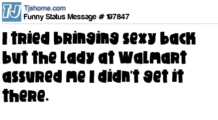 X says I tried bringing sexy back but the lady at Walmart assured me I didn't get it there.