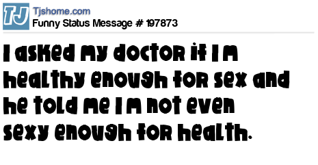 X says I asked my doctor if I’m healthy enough for sex and he told me I’m not even sexy enough for health.