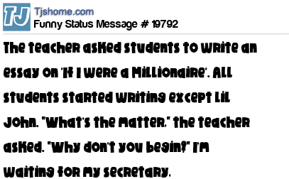 X is The teacher asked students to write an essay on 'If I were a Millionaire'. All students started writing except lil John. "What's the matter," the teacher asked. "Why don't you begin?" I'm waiting for my secretary,