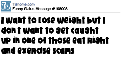 - # 203526 I want to lose weight, but I don`t want to get caught up in one of those "Eat right and exercise" scams.