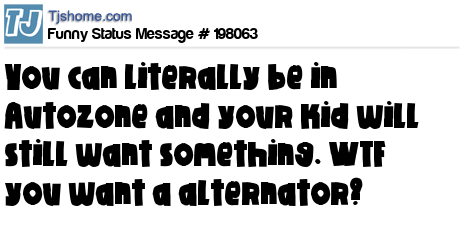 X says You can literally be in Autozone and your kid will still want something. WTF you want a alternator?