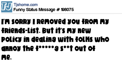 X says I'm sorry I removed you from my friends-list. But it's my new policy in dealing with folks who annoy the f*****g s**t out of me.
