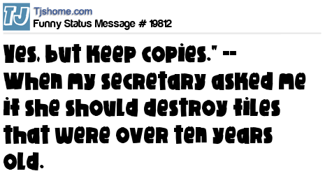 X is Yes, but keep copies." -- When my secretary asked me if she should destroy files that were over ten years old.