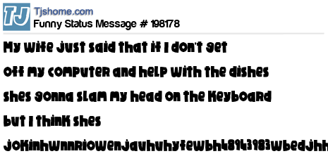 X says My wife just said that if I don't get off my computer and help with the dishes shes gonna slam my head on the keyboard but I think shes jokinhwnnriowenjauhuhyfewbh48943983wbedjhhfws7hg873243nbiu2q378hgfdbuifqbqwuiehguh-asdhnjqweiorijndaklajhb