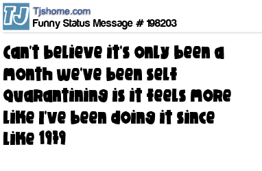 X is Can't believe it's only been a month we've been self quarantining is it feels more like I've been doing it since like 1979