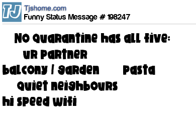 X says     No quarantine has all five:      – ur partner     – balcony / garden     – pasta     – quiet neighbours     – hi speed wifi