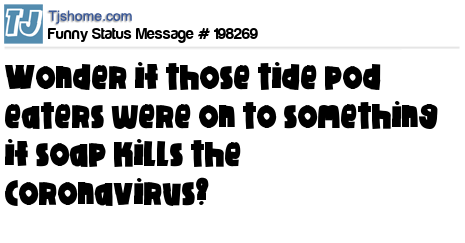 - # 197822 If soap kills the virus maybe these tide pod eating idiots had a point