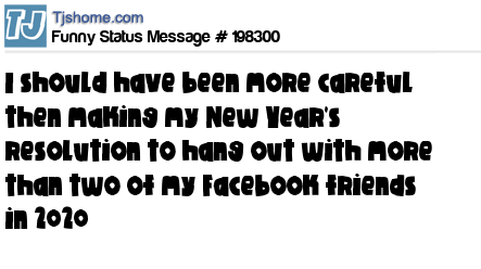 - # 198639 Maybe my New Year's resolution to hang out with more than three of my Facebook friends in 2020 was asking for too much?