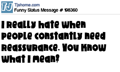 - # 177419 I really hate it when people constantly need reassurance. You know what I mean?