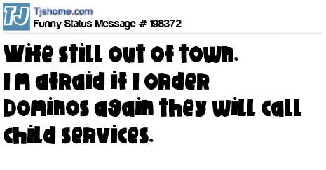 X says Wife still out of town. I’m afraid if I order Dominos again they will call child services.