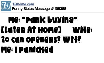 X says Me: *panic buying* [Later At Home] Wife: 20 can openers? Wtf? Me: I panicked