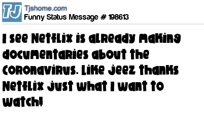 X is I see Netflix is already making documentaries about the Coronavirus. Like jeez thanks Netflix just what I want to watch!