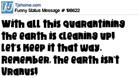 X  With all this quarantining the earth is cleaning up! Let's keep it that way. Remember, the earth isn't Uranus!