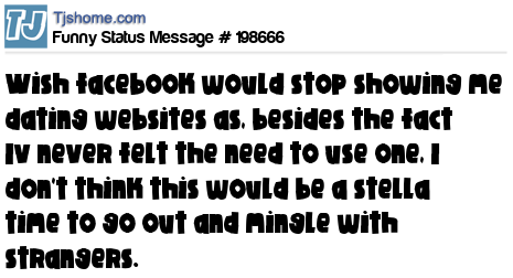 X is Wish facebook would stop showing me dating websites as, besides the fact Iv never felt the need to use one, I don't think this would be a stella time to go out and mingle with strangers.