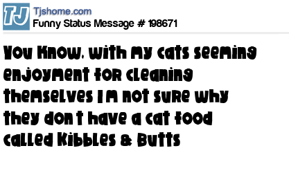 X says You know, with my cats seeming enjoyment for cleaning themselves I’m not sure why they don’t have a cat food called Kibbles & Butts