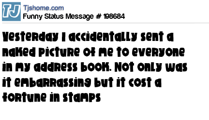 X says Yesterday I accidentally sent a naked picture of me to everyone in my address book. Not only was it embarrassing but it cost a fortune in stamps