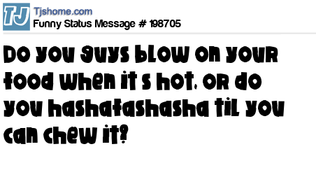 X says Do you guys blow on your food when it’s hot, or do you hashafashasha til you can chew it?