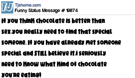 X If you think chocolate is better than sex,you really need to find that special someone. If you have already met someone special and STILL believe it,i seriously need to know what kind of chocolate you're eating!