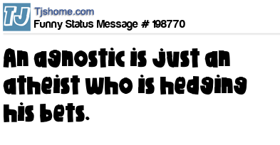 - # 91909 Agnostic: a lazy Atheist, someone who can't make up his freakin mind. :)
