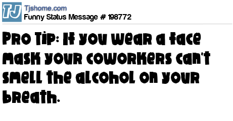 X Pro Tip: If you wear a face mask your coworkers can't smell the alcohol on your breath.