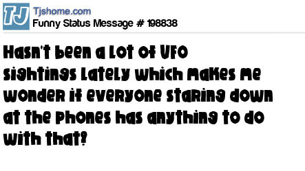 X is Hasn't been a lot of UFO sightings lately which makes me wonder if everyone staring down at the phones has anything to do with that?