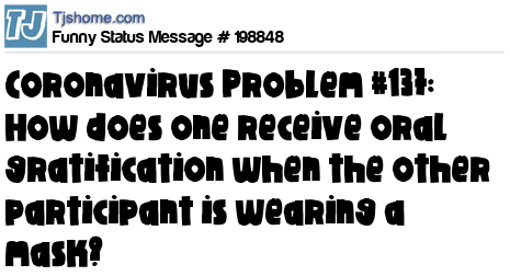 X says Coronavirus Problem #137: How does one receive oral gratification when the other participant is wearing a mask?